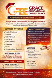 • ✔️ மாணவர்களின் திறமை மற்றும் தேவைக்கு ஏற்ப கல்லூரி மற்றும் படிப்பு தேர்வு வழிகாட்டல்