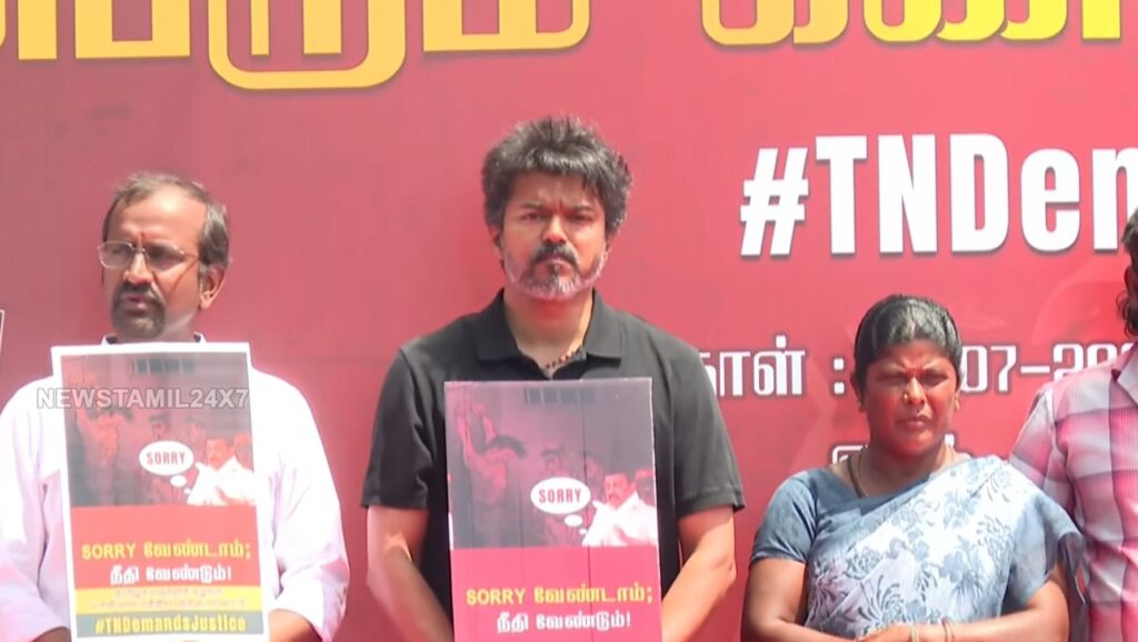 சிவகங்கை மாவட்டத்தில் அஜித் குமார் என்ற இளைஞரின் காவல் மரணம் குறித்து, உயர் நீதிமன்றத்தின் மேற்பார்வையில் சிறப்பு புலனாய்வு குழு அமைக்க வேண்டும் என்று விஜய் வலியுறுத்தினார். “கடந்த நான்கு ஆண்டுகளில் 24 காவல் மரணங்கள் நிகழ்ந்துள்ளன. இது குறித்து திமுக அரசு வெள்ளை அறிக்கை வெளியிட வேண்டும்,” என்று அவர் கோரிக்கை வைத்தார். மேலும், காவல்துறையின் “கொடூரமான” செயல்பாடுகளுக்கு மு.க.ஸ்டாலின் பொறுப்பேற்க வேண்டும் என்றும் அவர் கூறினார்.